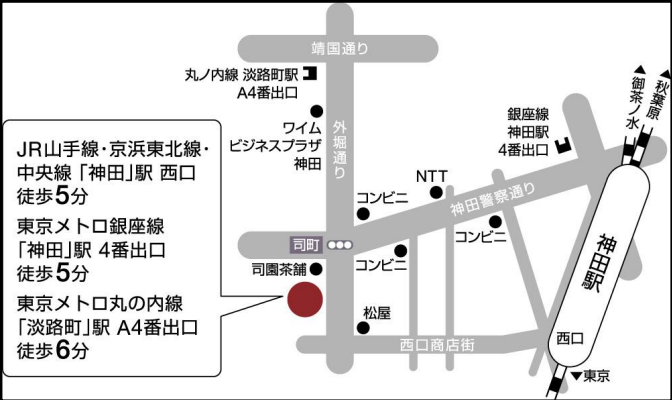 ・アクセス:JR線「神田駅」西口より徒歩5分、都営新宿線「小川町駅」A2出口より徒歩6分