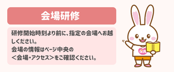 - 会場:LMJ東京研修センター住所:東京都文京区本郷1-11-14 小倉ビルアクセス:都営三田線「水道橋駅」から徒歩3分、JR「水道橋駅」から徒歩6分地下鉄丸ノ内線「後楽園駅」から徒歩8分、地下鉄丸ノ内線「本郷三丁目駅」から徒歩8分都営地下鉄大江戸線「本郷三丁目駅」から徒歩9分http://www.lmj-tkc.co.jp/access<会場への入場可能時刻について>・当日は9:15~開場・受付開始になります。9時以前はビルへの入館も出来かねます。開場時刻まではビル3階の共用待合スペース等でお待ちください。・会場ビル周辺には、土日早朝から開店しているお店等がございませんので、早くお越しになりすぎないように注意ください。<持ち物・服装について>・休憩時間が45分と短く、周囲にお店等が少ないため昼食は必ずご持参ください。会場内でお召し上がりいただけますが、ごみは各自お持ち帰り願います。・各自マスクを持参し、研修会場への出入り、研修中は常時着装をお願いします。・感染症対策のため、会場の空調及び換気システムは強めの設定で常時運転を行います。また適時窓を開放するなどで換気をいたします。室内での受講にあたり、肌寒さを感じたりする場合も生じる可能性がございますので、着脱できる着衣(羽織物を持参するなど)で調整する、必要に応じてひざ掛けなどを持参するなど、ご自身で都度調整、対応できるようあらかじめご準備をいただければ幸いです。<健康に関する留意事項>・当日の朝、自宅を出立前に検温等の体調チェックをしていただき、37.5℃以上の発熱、感冒症状がある場合には参加をお控えください。<研修会場にご参集いただく形式での実施について>・この日程で実施する研修は感染症防止対策などの配慮を徹底したうえで、会場に参集いただく方式で開催をする方針であり、現状ではE-learning等での実施の予定はございません。